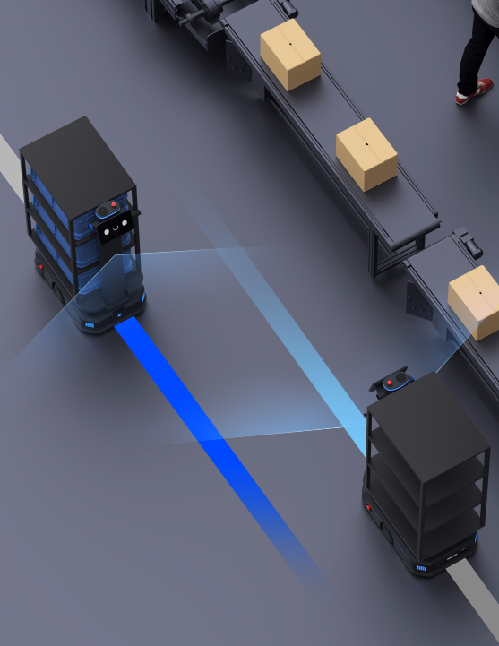 Utilizing visual recognition, the T300 enables orderly multi-robot queuing and following, mainly for material prep and diverse goods transport
